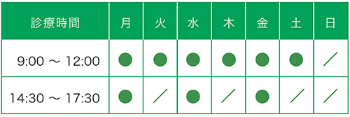 火曜日午後、木曜日午後、土曜日午後、日曜日、祝日
